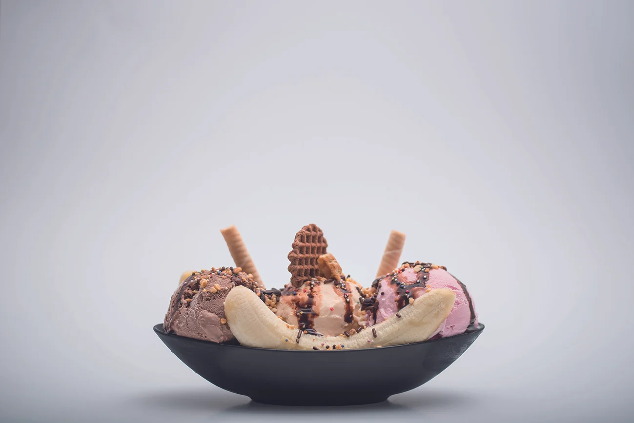 Our scoop ice cream is combined with different add-ons such as caramel nuts, chocolate chips, chocolate syrup and rum raisins.
